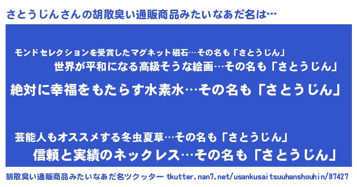 | ヘコむあだ名 | 『さとうじん(遠い目)』『さとっちょ』 |