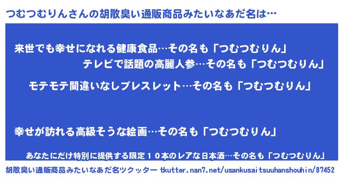 | 男性向けラノベタイトル風あだ名 | 『ツムツムリンアートオンライン』 |