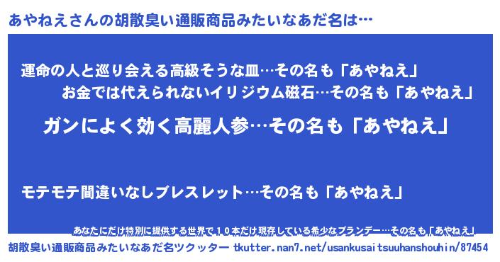 | 意味不明あだ名 | 『自称あやねえ』『あやねえフォーエバー』 |