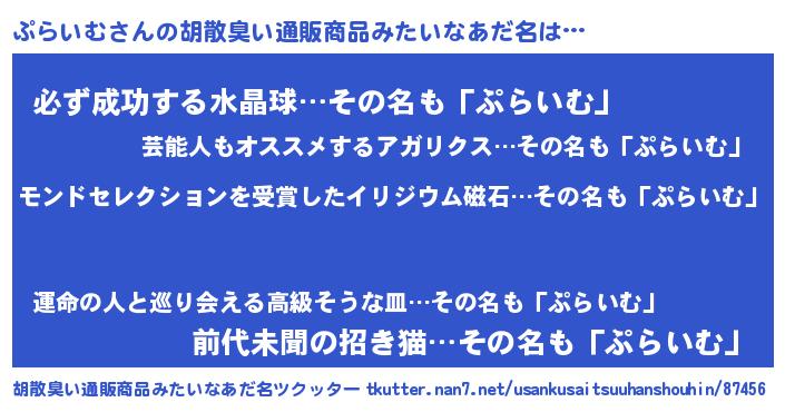 | ヘコむあだ名 | 『ぷらにゅー』『ぷらいむ(苦笑)』 |