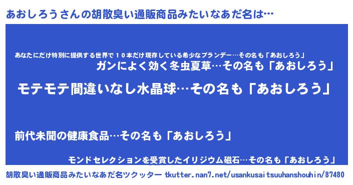 あおしろうさんの胡散臭い通販商品みたいなあだ名をツクッター!
