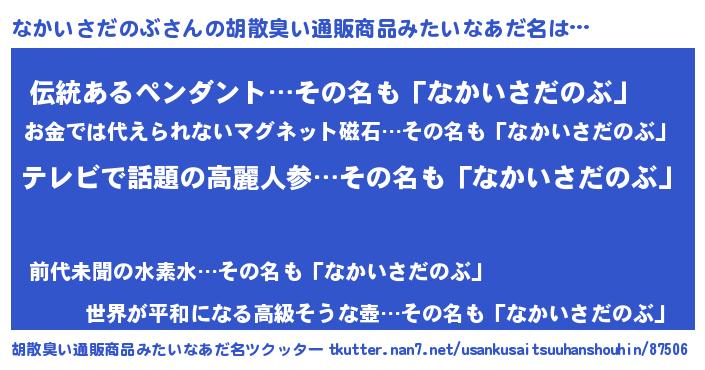 | 肩書あだ名 | 『なかいさだのぶ閣下』 |