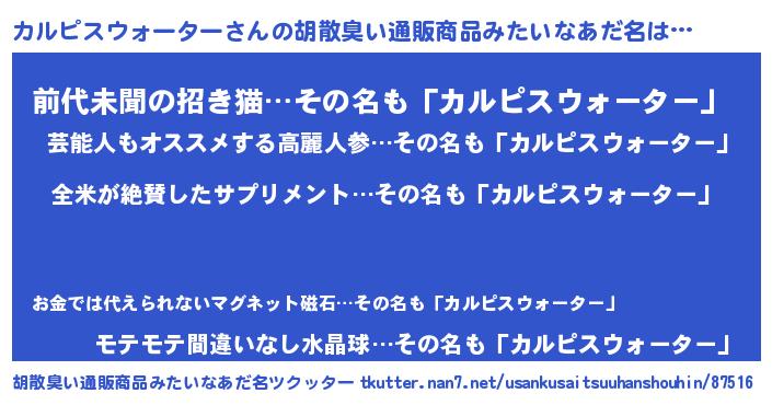 | ヘコむあだ名 | 『カルを』『カルピスウォーター(遠い目)』 |