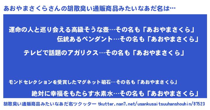 | 意味不明あだ名 | 『自称あおやまさくら』 |