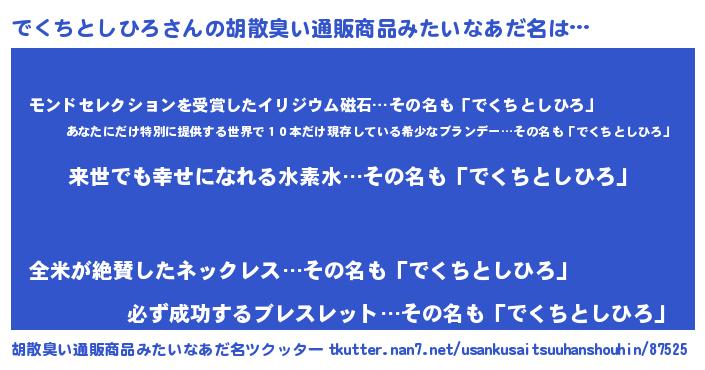 | ヘコむあだ名 | 『でくちとしひろ(遠い目)』『でくにー』 |