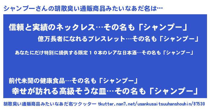 | 男性向けラノベタイトル風あだ名 | 『この素晴らしい世界にシャンプーを!』 |