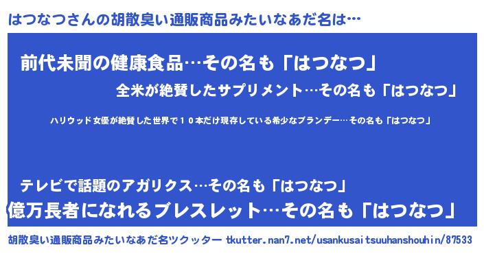 | ヘコむあだ名 | 『はつなつ(苦笑)』『はつもー』 |