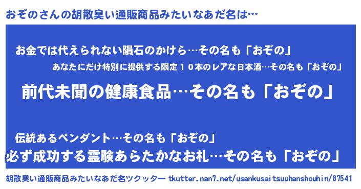 | ヘコむあだ名 | 『おぞの(爆)』『おぞもー』 |