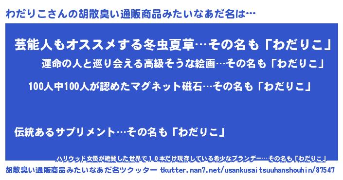 | ヘコむあだ名 | 『つくし』『わだっ子』『わだもー』 |