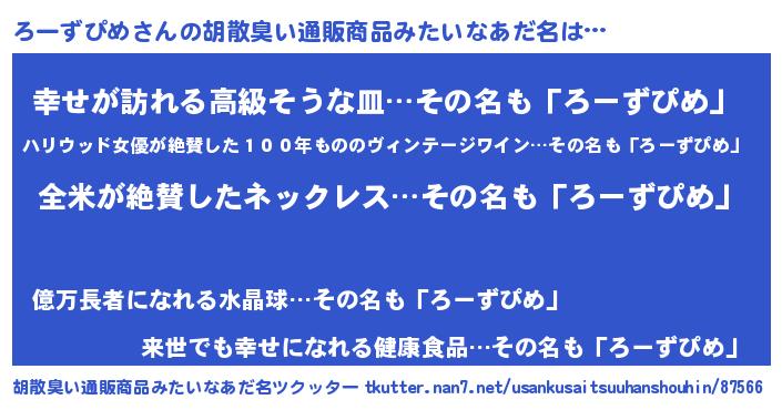 | 意味不明あだ名 | 『とにかく怪しいろーずぴめ』 |