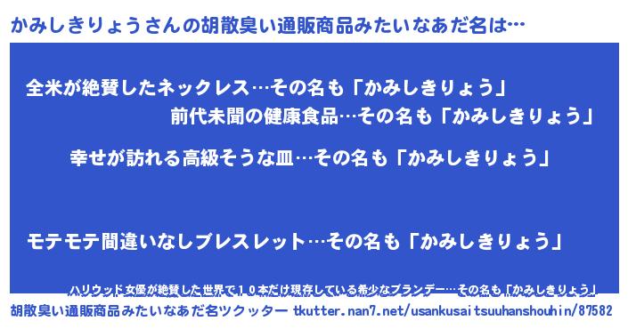 | 意味不明あだ名 | 『かみしきりょうフォーエバー』 |
