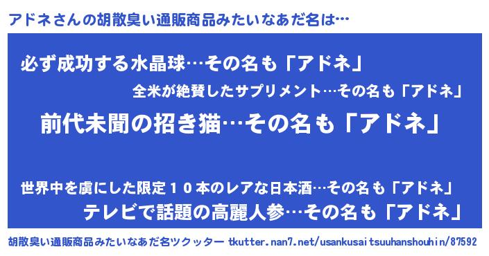 | ヘコむあだ名 | 『アドネ(小並感)』『アドにゅー』 |