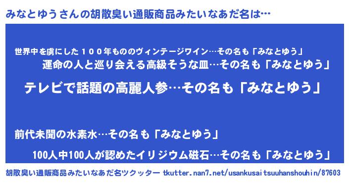| 意味不明あだ名 | 『自称みなとゆう』 |