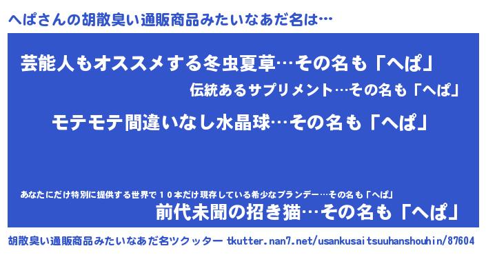 へぱさんの胡散臭い通販商品みたいなあだ名をツクッター!