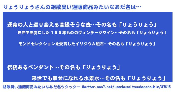 | ヒーロー風カッコイイあだ名 | 『天空の使者りょうりょう』 |