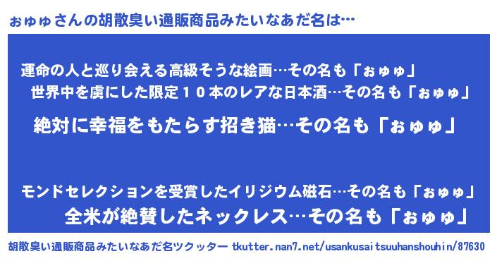 | ヒーロー風カッコイイあだ名 | 『ネオォュュ』『ウルトラぉゅゅマン』 |