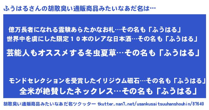 | 意味不明あだ名 | 『自称ふうはる』『ペロリンふうはる』 |