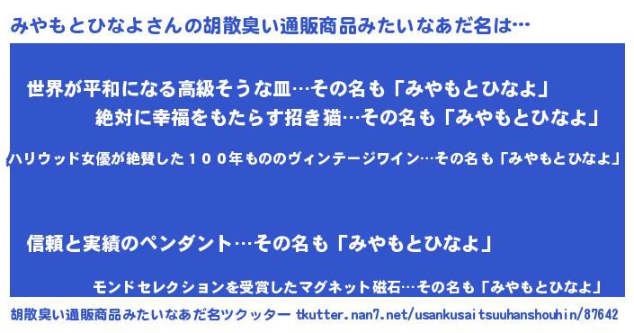 | 料理風あだ名 | 『みやもとひなよのカルパッチョ風』 |