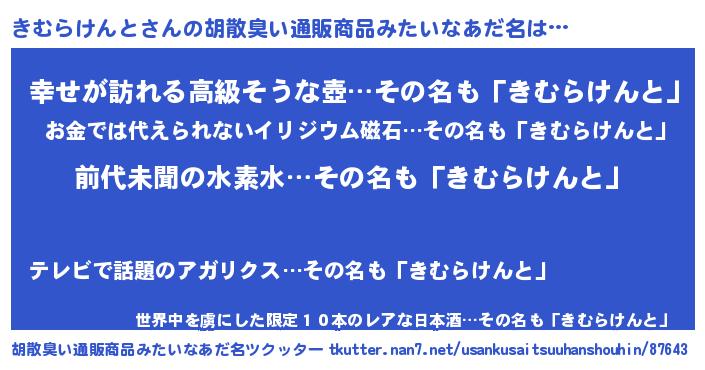 きむらけんとさんの胡散臭い通販商品みたいなあだ名をツクッター!