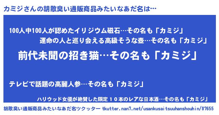 | ヘコむあだ名 | 『カミジ(小並感)』『なまこ酢』 |