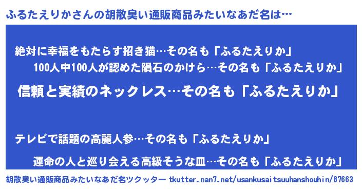 | 意味不明あだ名 | 『とにかく怪しいふるたえりか』 |