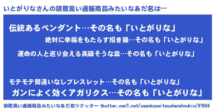 いとがりなさんの胡散臭い通販商品みたいなあだ名をツクッター!