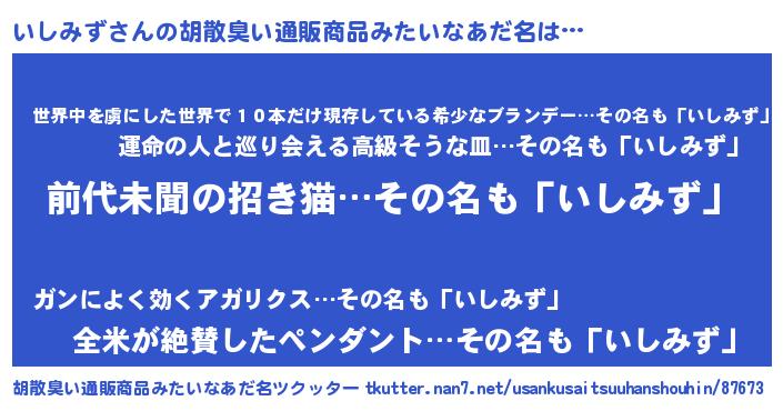 | 意味不明あだ名 | 『永久保存いしみず』 |