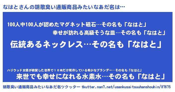 | 意味不明あだ名 | 『とにかく怪しいなはと』 |