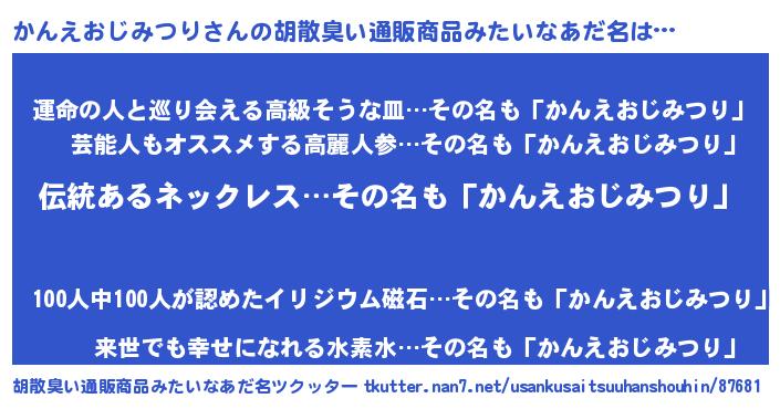 | 意味不明あだ名 | 『とにかく怪しいかんえおじみつり』 |
