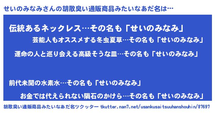 | 欧米人風あだ名 | 『せいのみなみクリステル』 |
