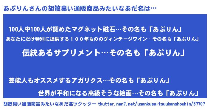 | 意味不明あだ名 | 『とにかく怪しいあぷりん』 |