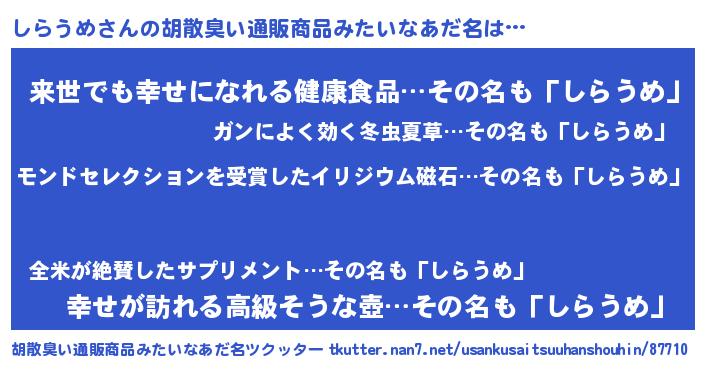 | 男性向けラノベタイトル風あだ名 | 『ノーゲーム・ノーシラウメ』 |
