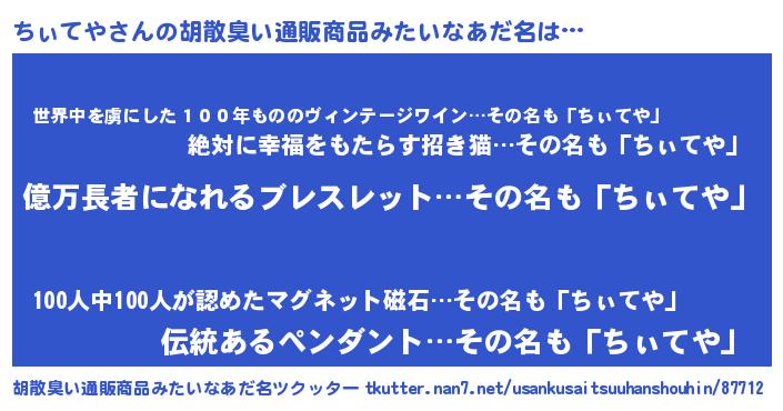 | 意味不明あだ名 | 『ペロリンちぃてや』『永久保存ちぃてや』 |