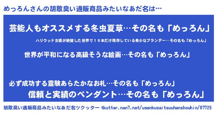 | 意味不明あだ名 | 『めっろんフォーエバー』『自称めっろん』 |