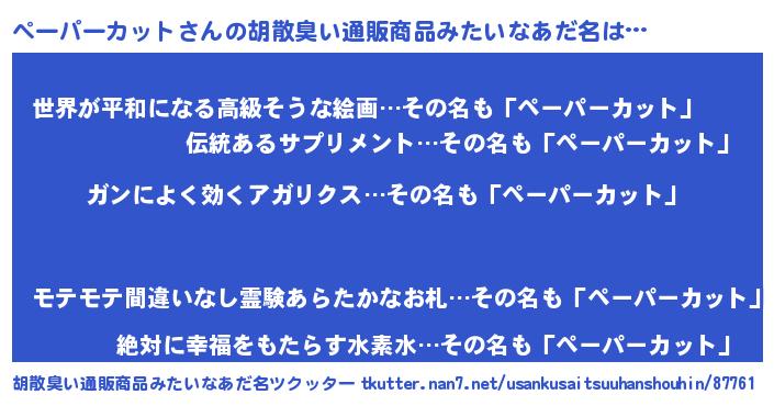 | 意味不明あだ名 | 『自称ペーパーカット』 |
