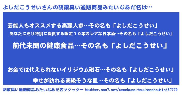 | 意味不明あだ名 | 『永久保存よしだこうせい』 |