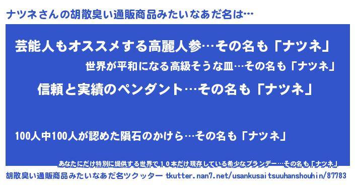 | ヘコむあだ名 | 『ナツぷりん』『レバニラ』 |