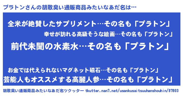 | ヘコむあだ名 | 『プラトン(震え声)』『プラぷりん』 |