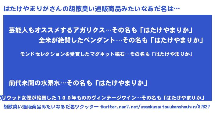 | ヘコむあだ名 | 『はたを』『はたけやまりか(遠い目)』 |
