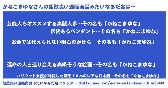 | 意味不明あだ名 | 『眠気覚ましガムかねこまゆな味』 |