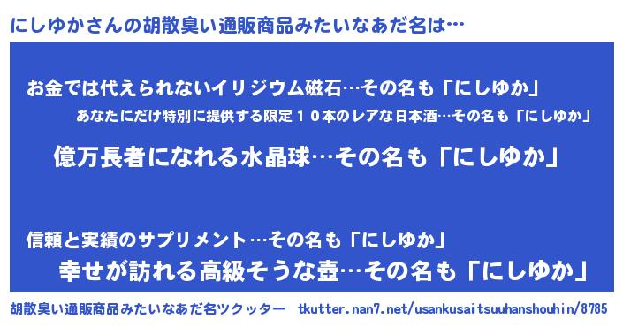 | ヒーロー風カッコイイあだ名 | 『スーパーニシユカ』『愛の使者にしゆか』 |