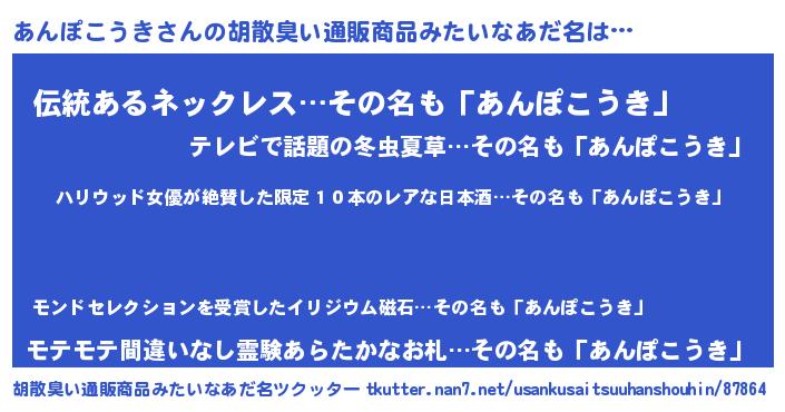 | 意味不明あだ名 | 『住所不定無職あんぽこうき(43歳)』 |