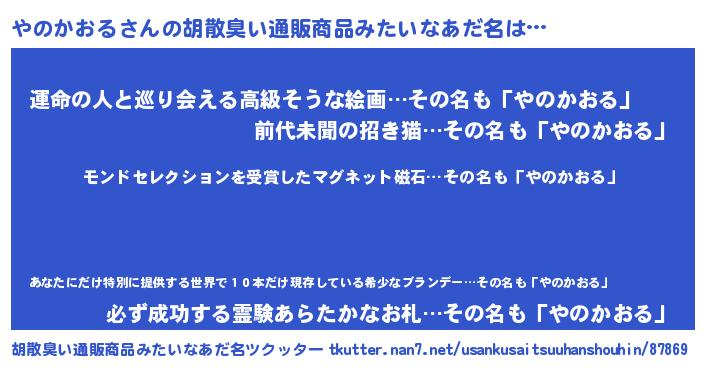 | 男性向けラノベタイトル風あだ名 | 『やのかおるに滅ぼされるだけの簡単なお仕事です』 |