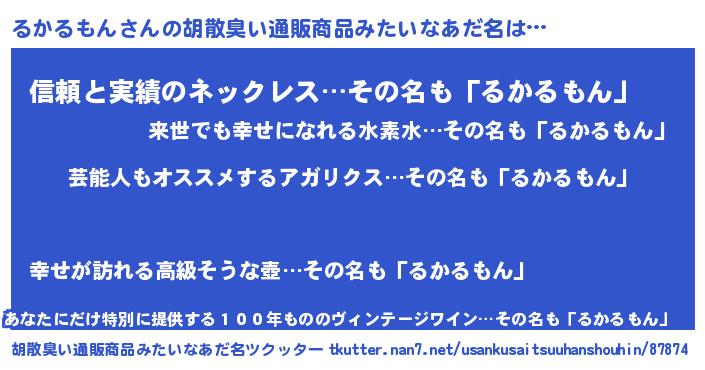 | 意味不明あだ名 | 『つくし科るかるもん属』 |