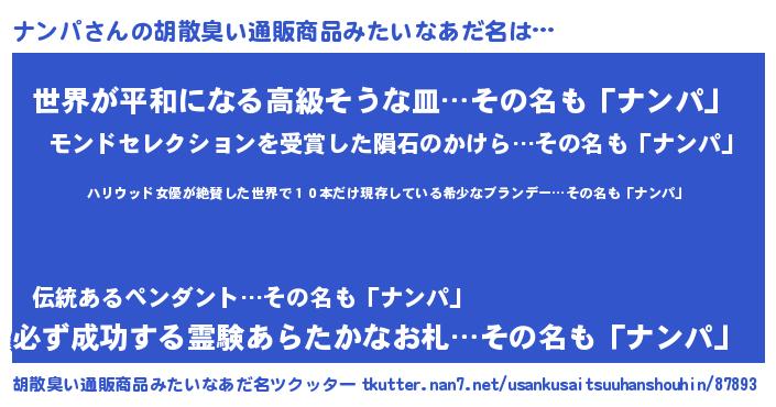 | 意味不明あだ名 | 『住所不定無職ナンパ(93歳)』 |