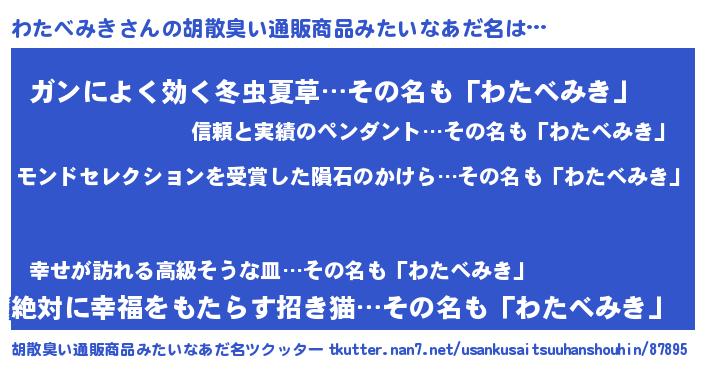 | 意味不明あだ名 | 『眠気覚ましガムわたべみき味』 |
