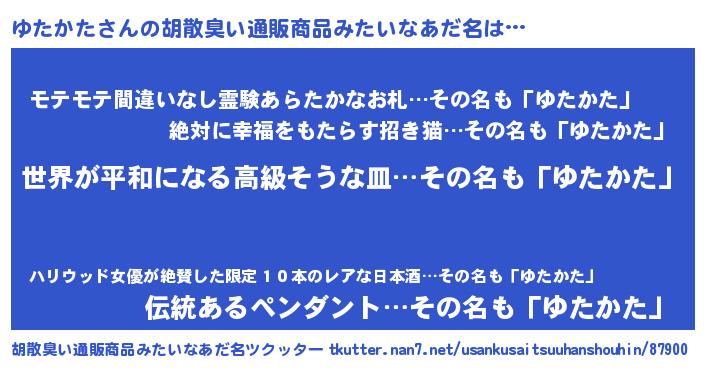 | ヘコむあだ名 | 『なまこ酢』『ゆたもー』 |