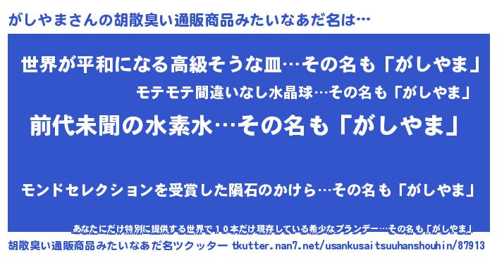| ヒーロー風カッコイイあだ名 | 『ネオガシヤマ』『ウルトラがしやまマン』 |