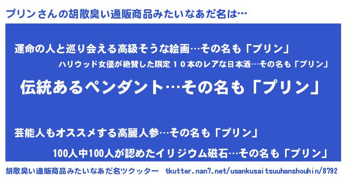 | 意味不明あだ名 | 『とにかく怪しいプリン』 |