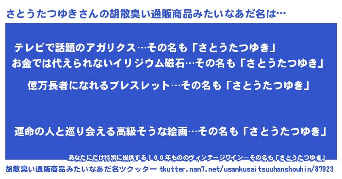 | 男性向けラノベタイトル風あだ名 | 『サトウタツユキアートオンライン』 |